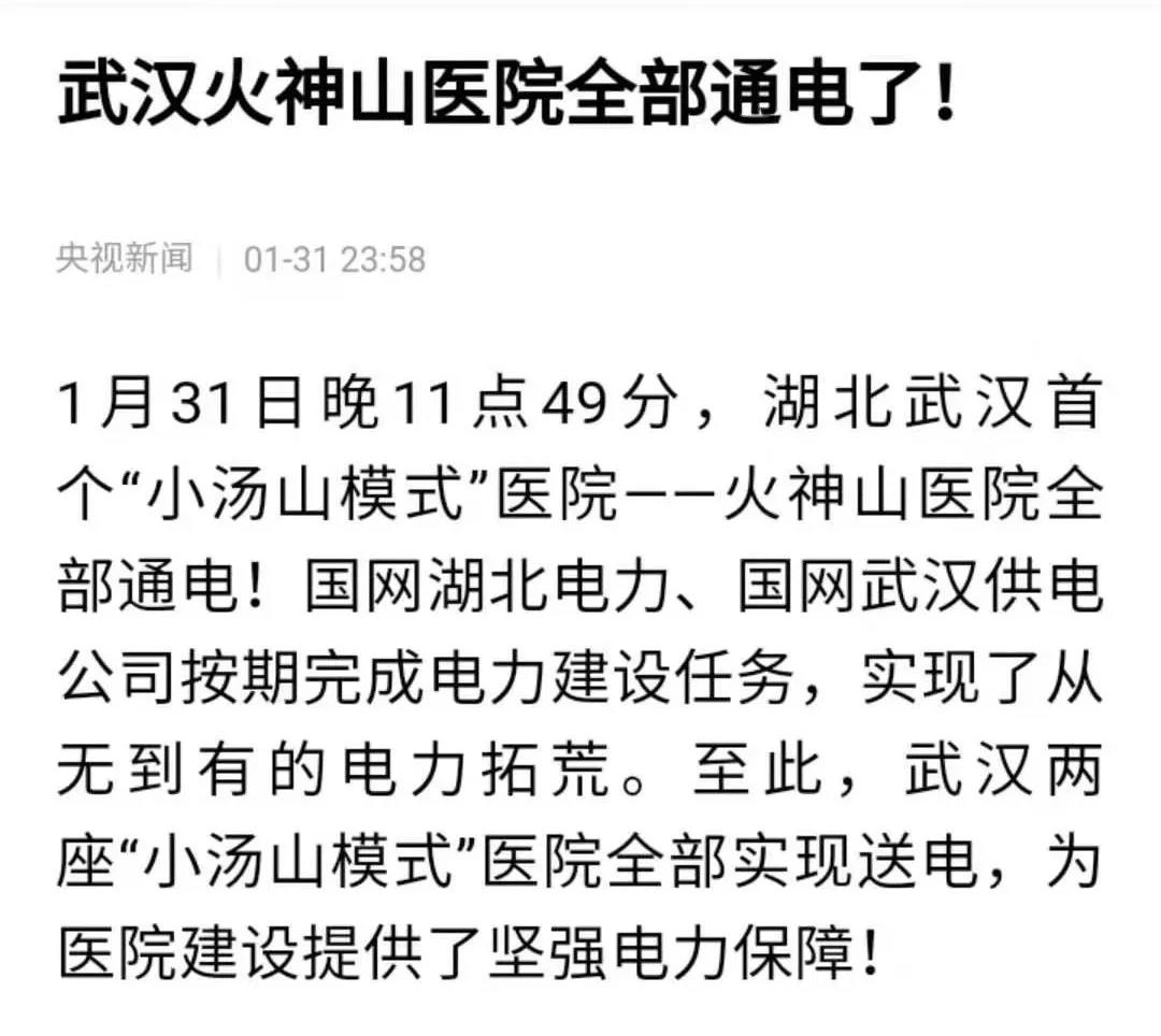世人拾柴,点亮火神山。1月31日晚11点49分,